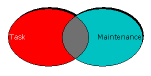 The distinction between task — what the group was set up to do — and maintenance — keeping the group going in order to do it, is such a traditional one that I have not been able to trace its origins. Clearly, formal groups emphasise task, and informal ones prioritise maintenance. As the diagram illustrates, some of the time these elements overlap; the development of "team spirit" amongst a group engaged in competitive sport may be a maintenance function, but it is important to task performance. They can, however, pull in opposite directions.
