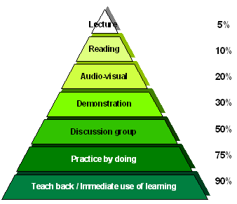 Looks plausible, doesn't it? It is plausible enough to appear on over 1,200 web-sites, according to one search engine, and in goodness knows how many textbooks on teaching. Moreover, its provenance is impeccable; NTL (no relation to the former UK cable company) is a highly-respected institution, now "NTL Institute for Applied Behavioral Sciences" undertaking research and training in group dynamics. (The attribution is always to "National Training Laboratories, Bethel, Maine")